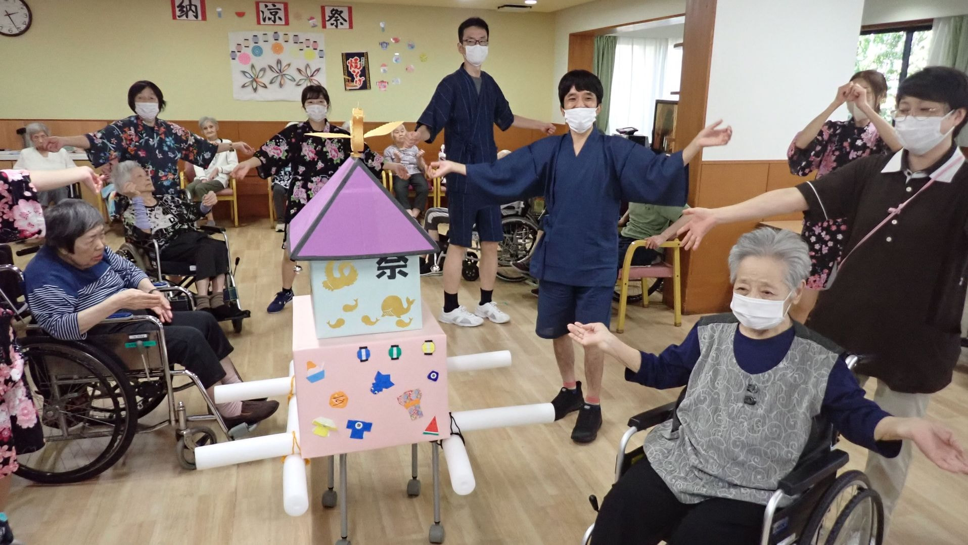 ご家族と一緒の納涼祭は中止となりましたが、ご入居者・ご利用者の皆様には夏を楽しんでいただくため、夏祭りを開催しました。